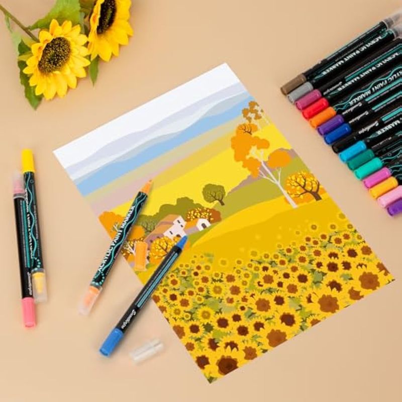 SMOOTHERPRO BOLíGRAFOS DE PINTURA ACRíLICA DE DOBLE PUNTA, 24 COLORES, MARCADORES DE PINTURA ACRíLICA CON PUNTA FINA Y PUNTA REDONDA PARA PINTURA DE ROCAS, LIENZO, VIDRIO, PLáSTICO, CERáMICA, MADERA, MANUALIDADES, DECORACIóN PARA COLOREAR (DAP24)