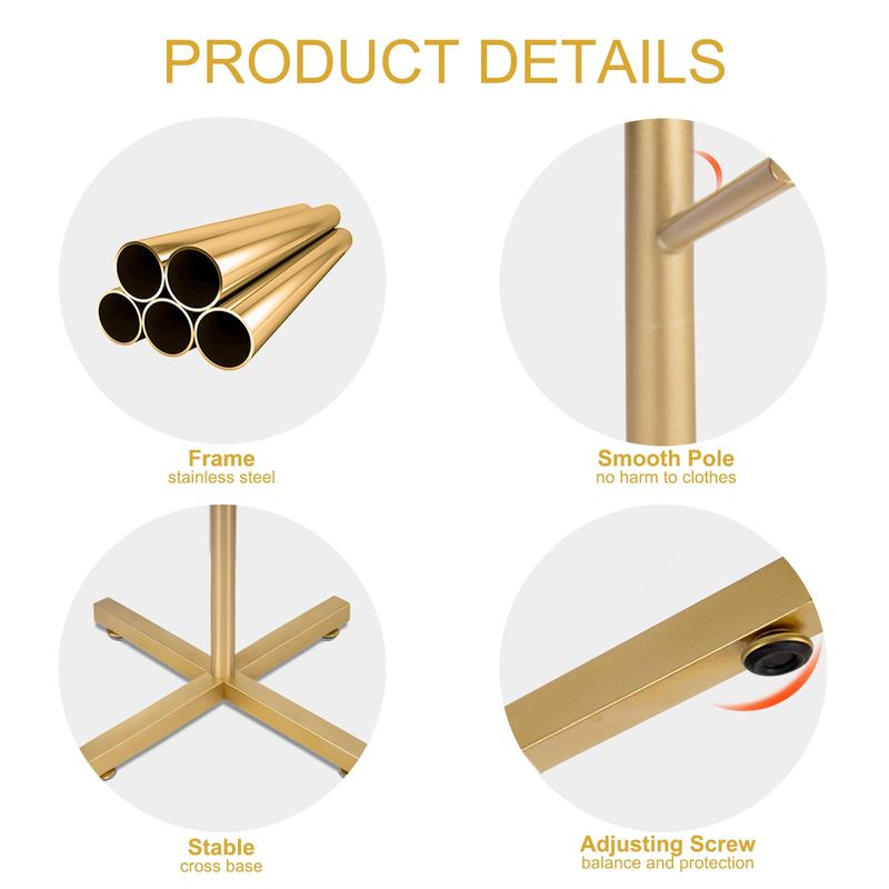 Alta calidad: el perchero está hecho de acero inoxidable y conexión giratoria de doble hilo. El perchero de pie no es fácil de deformar y tiene una capacidad de carga más fuerte. El perchero independiente adopta tecnología avanzada de pintura de nano-horneado, con color brillante y suave, sin caída de pintura, sin óxido y sin olor peculiar.