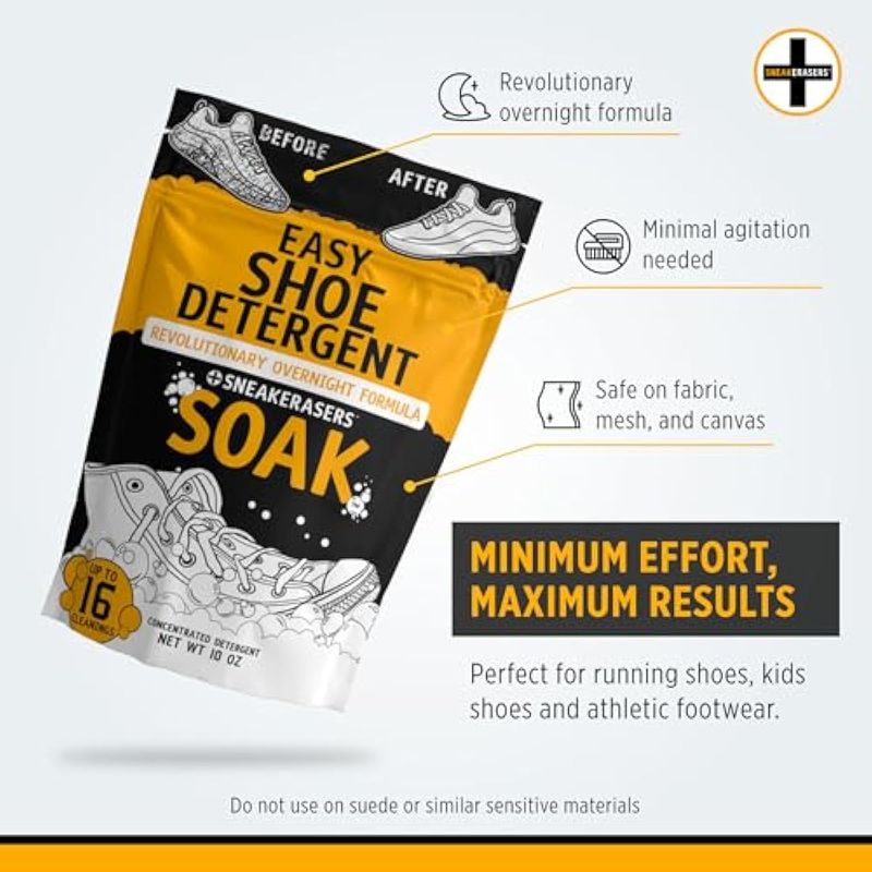 SneakERASERS Remojar durante la noche, limpiador de zapatos y zapatillas, detergente fácil para