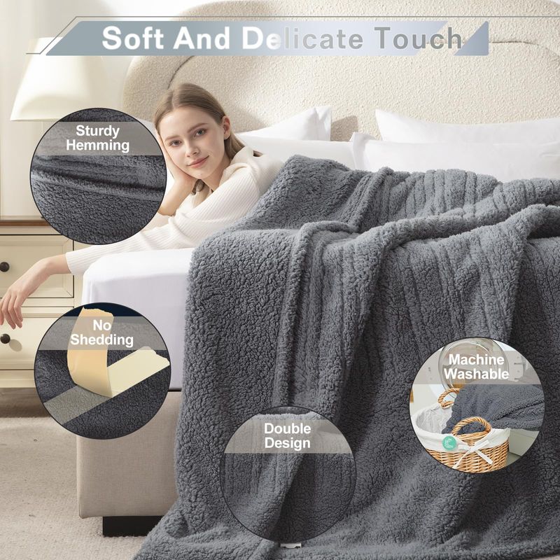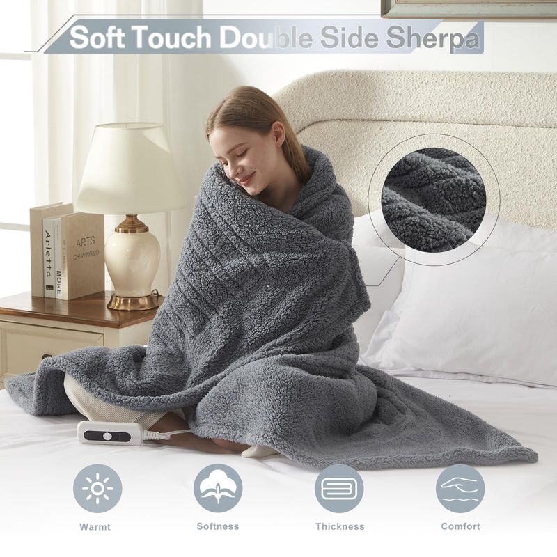 SNUGSUN Manta térmica de sherpa de doble cara, manta eléctrica de calefacción suave para cama,