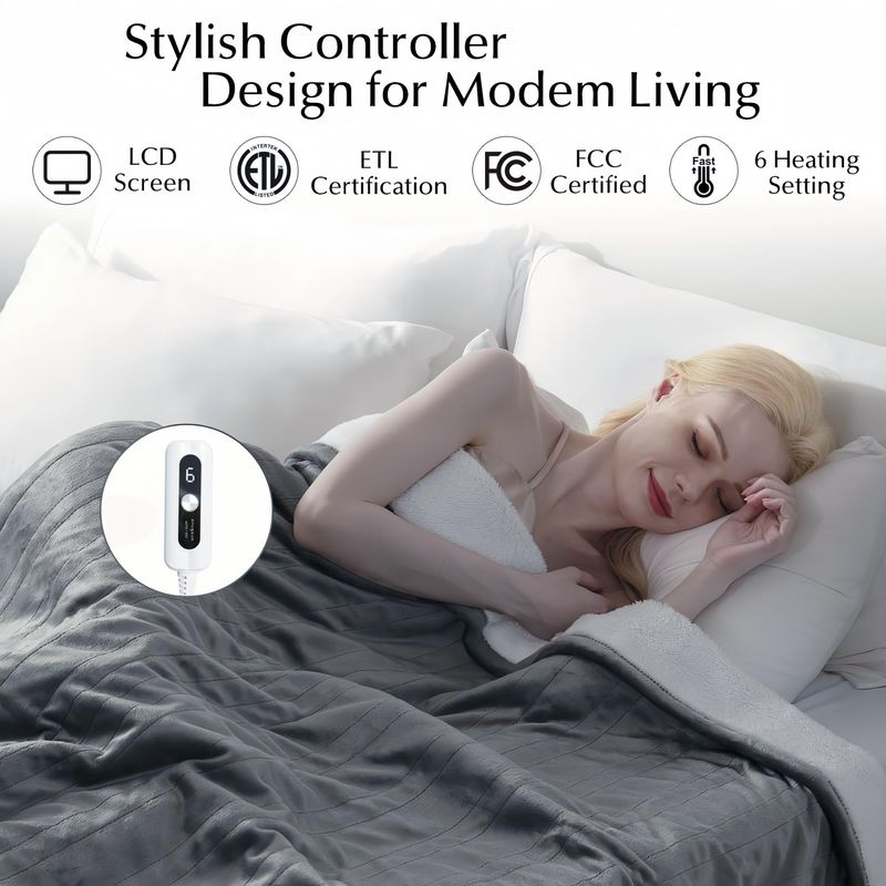 SNUGSUN Manta térmica, manta térmica suave y acogedora para cama, sistema de seguridad automático, 6