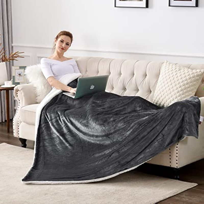 Diseño único: la manta sherpa de alta calidad de SOCHOW adopta un diseño de doble cara, un lado es de sherpa cálido de 260GSM, y el otro lado es de forro polar de franela suave de 220GSM, que puede proporcionarte diferentes sensaciones suaves. Hay suficiente aire dentro de la manta para mantenerla caliente y transpirable, lo que te hace sentir cálido y esponjoso durante el sueño.