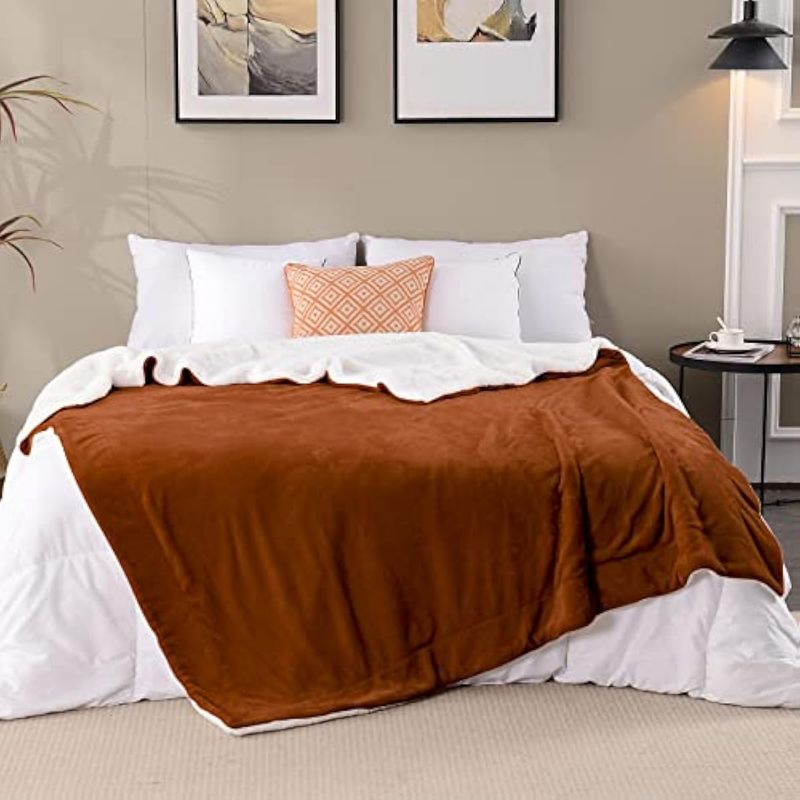 Diseño único: la manta sherpa de alta calidad de SOCHOW adopta un diseño de doble cara, un lado es de sherpa cálido de 260GSM, y el otro lado es de forro polar de franela suave de 220GSM, que puede proporcionarte diferentes sensaciones suaves. Hay suficiente aire dentro de la manta para mantenerla caliente y transpirable, lo que te hace sentir cálido y esponjoso durante el sueño.