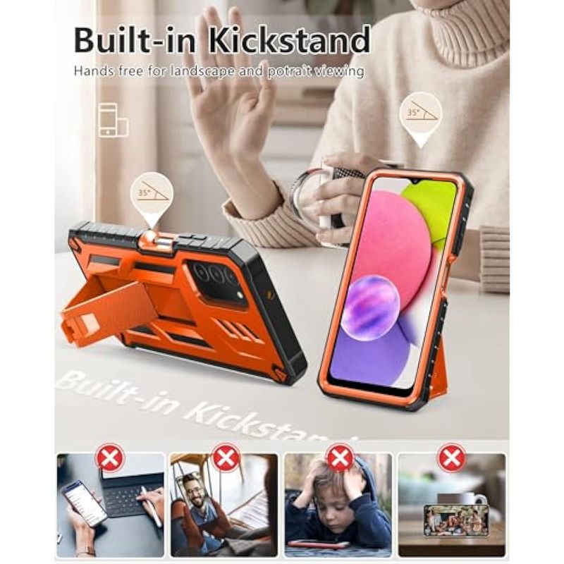 TELEFONIAACCESORIOSFUNDAS Y PROTECTORESSOiOS Funda para teléfono Samsung Galaxy A03S: Construido en soporte duro y protector táctil Militar