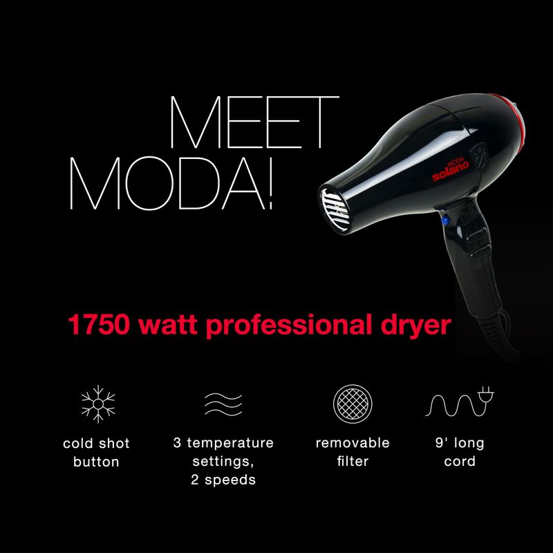 Solano Moda - Secador de pelo iónico de 2 velocidades de secado rápido, 1750 W, silenciador interno