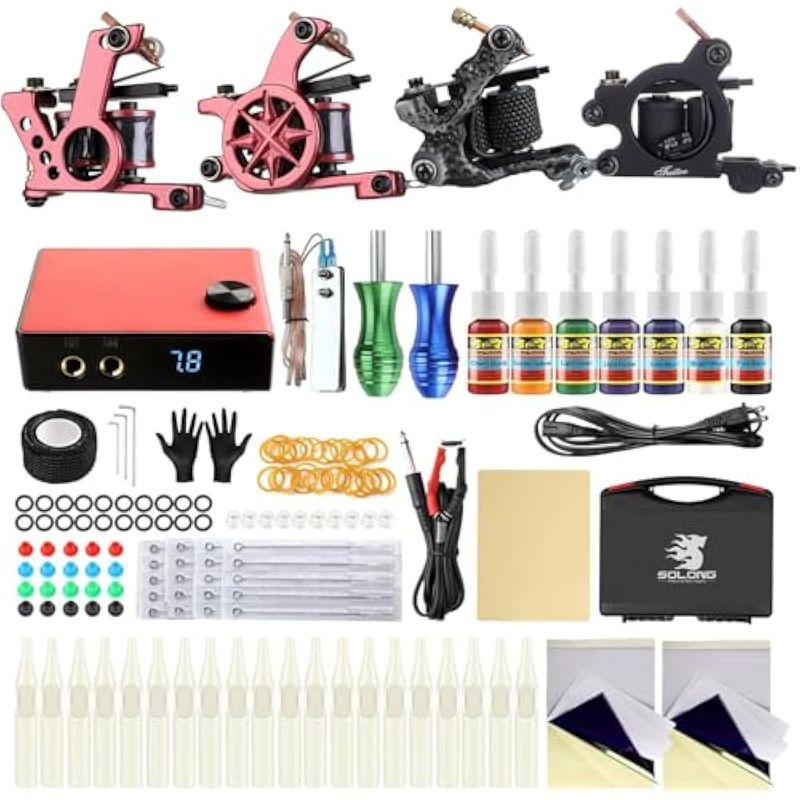BELLEZA Y SALUDBELLEZA Y CUIDADO CORPORALSolong Kit completo de tatuaje 4 ametralladoras Pro, fuente de alimentación, agujas de pedal de pie