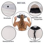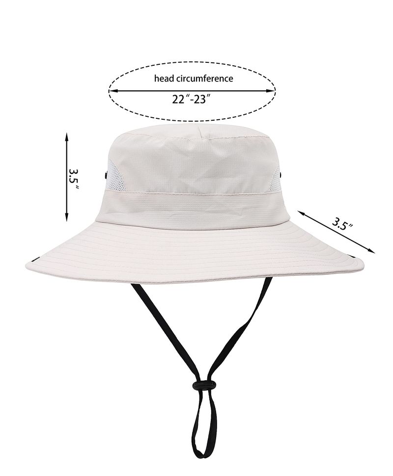 Talla única: sombrero de verano para mujer de estilo casual con un ajuste cómodo; circunferencia: 22 a 23 pulgadas, altura del sombrero: 3.5 pulgadas, elástico ajustable en la parte posterior de los sombreros de sol flexibles para mujer para ajustar la circunferencia para adaptarse al tamaño de tu cabeza. La correa de barbilla libremente ajustable proporciona un ajuste cómodo y evita eficazmente que la tapa de protección UV se vuele lejos del viento.
