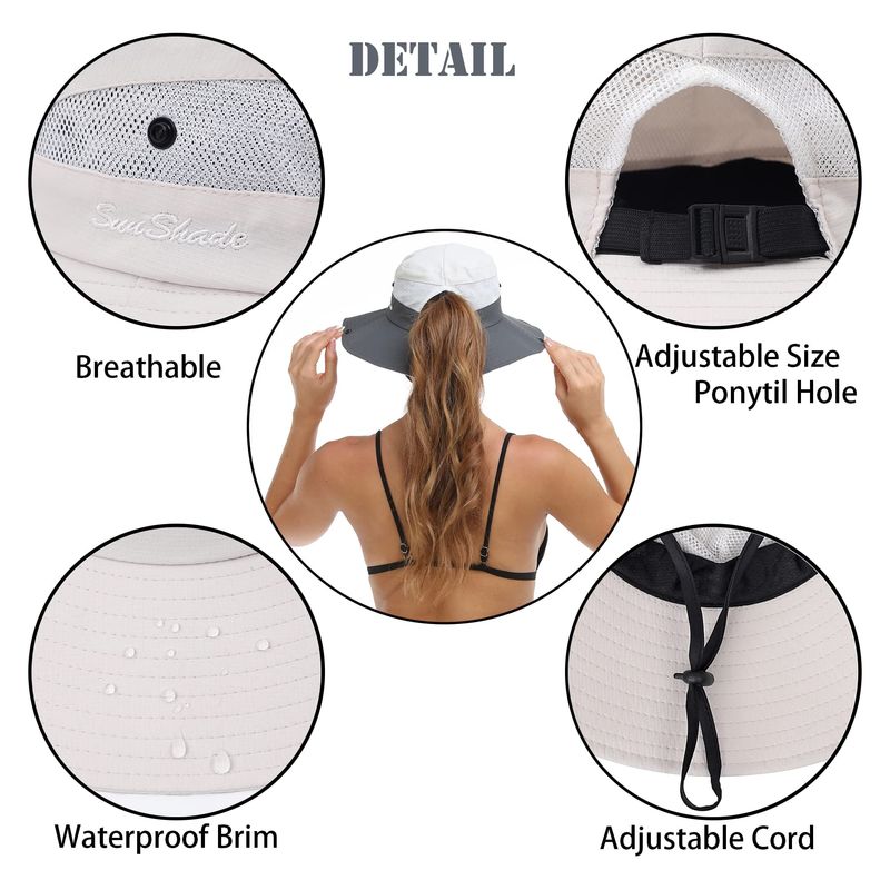 Diseño cuidadoso: sombreros de sol para mujer, botones en ambos lados del sombrero de cubo pueden cambiar el estilo para más experiencia; la parte posterior del sombrero está diseñada con agujero para cola de caballo, que proporciona muchas comodidades para las mujeres con cola de caballo larga o moño, puedes llevar fácilmente tu cabello perforado y mantenido alejado del cuello, ya no es una restricción para aquellos que trabajan al aire libre o mujeres que aman los deportes al aire libre; botones en los lados del sombrero de cubo puede cambiar el estilo para más experiencia.
