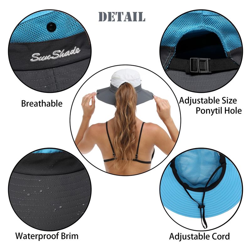 Escena aplicable: este sombrero de sol para mujer, sombreros de playa para mujer, sombreros de cola de caballo para mujer es una gran opción para el uso diario y actividades al aire libre, especialmente pesca, playa, senderismo, kayak, caza, camping, jardinería, viajes, piscina, safari, golf, etc.