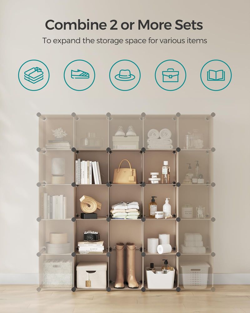 SONGMICS - Organizador con forma de cubo para almacenamiento; biblioteca de 16 cubos; armario tipo - Pardo