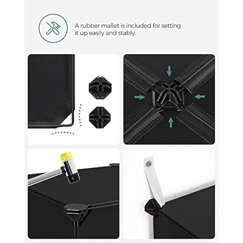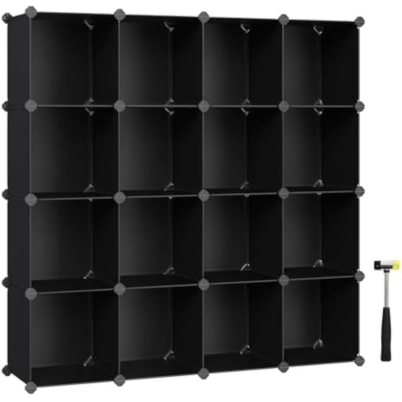 SONGMICS - ORGANIZADOR CON FORMA DE CUBO PARA ALMACENAMIENTO; BIBLIOTECA DE 16 CUBOS; ARMARIO TIPO GABINETE DE PLáSTICO PARA ARMAR Tú MISMO; ESTANTERíA EN MóDULOS; ESTANTERíA DE ALMACENAMIENTO PARA DORMITORIO, SALA DE ESTAR U OFICINA; EN COLOR NEGRO; MEDIDAS 48.4 PULGADAS DE LARGO X 12.2 PULGADAS DE ANCHO X 48.4 PULGADAS DE ALTO (ULPC44BK)