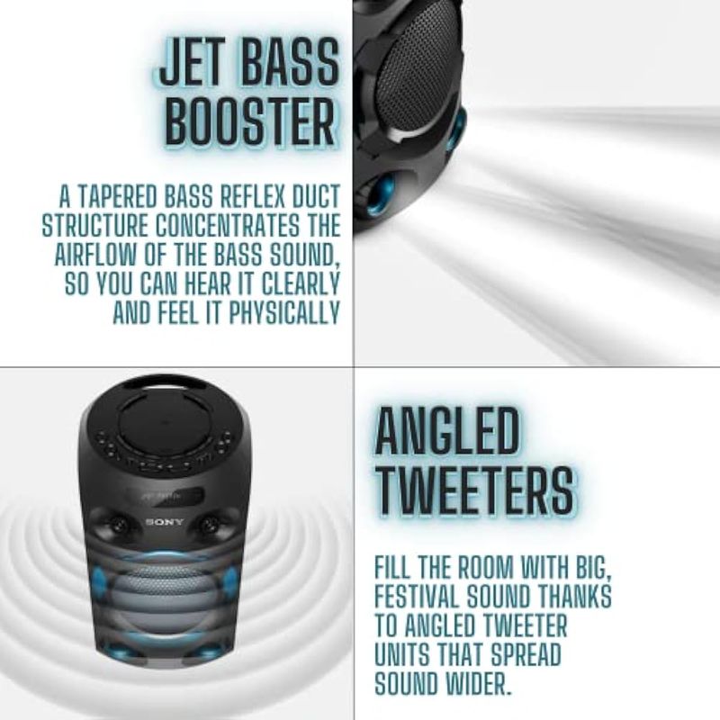 Sony Altavoz Bluetooth para fiesta, sistema de audio para el hogar, altavoz de graves fuertes, luces