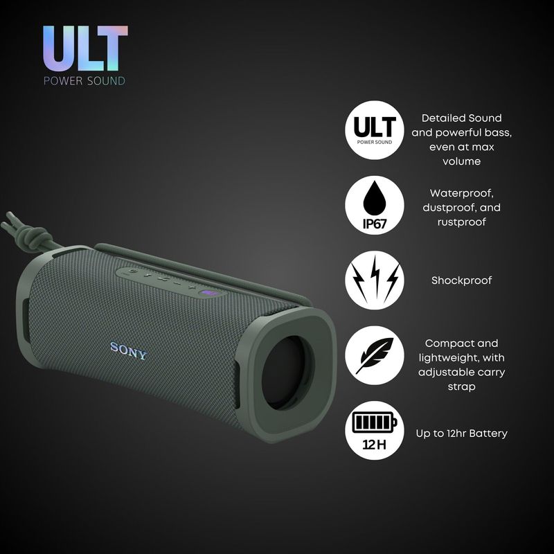 AUDIOPARLANTESSony SRSULT10G ULT Field Series Altavoz (gris bosque) Paquete con carcasa rígida de viaje y funda