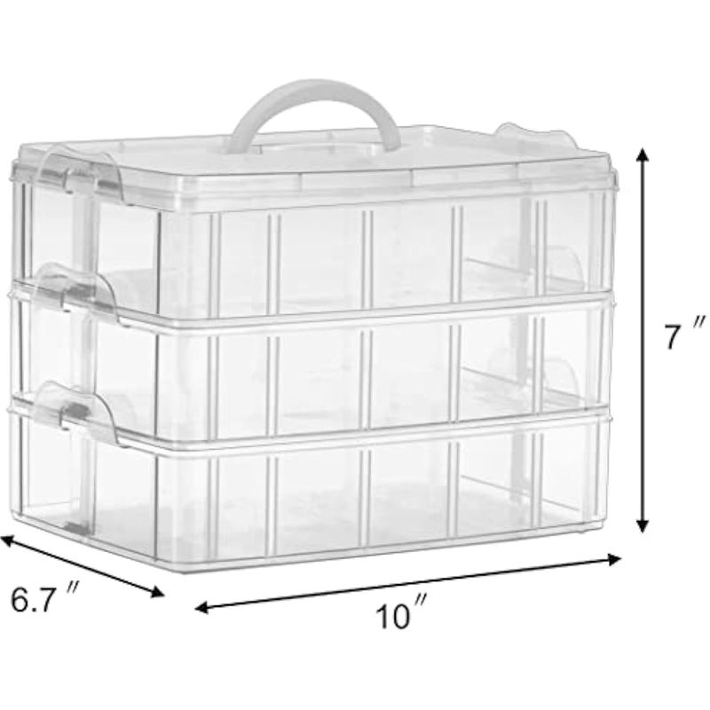 SOOYEE ORGANIZADORES DE MANUALIDADES APILABLES DE 3 NIVELES Y CAJA DE ALMACENAMIENTO DE PLáSTICO CON 30 COMPARTIMENTOS PARA CUENTAS, JUGUETES, MUñECAS, ARTES Y MANUALIDADES, CINTA WASHI, COLECCIóN DE ROCK, CINTAS, TRANSPARENTE