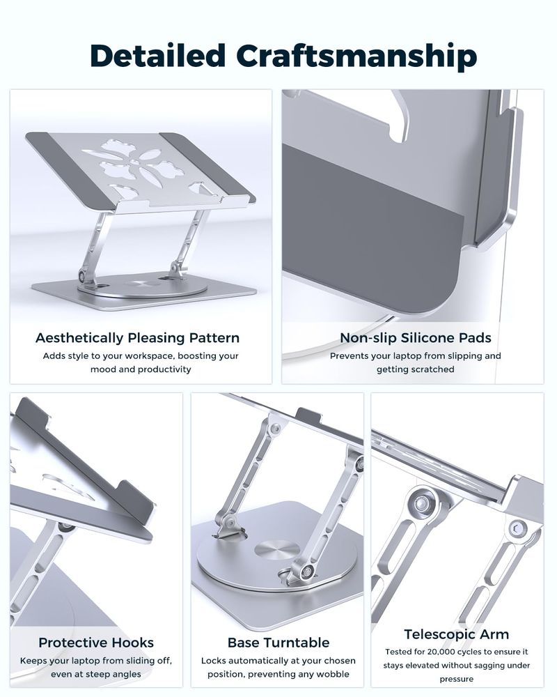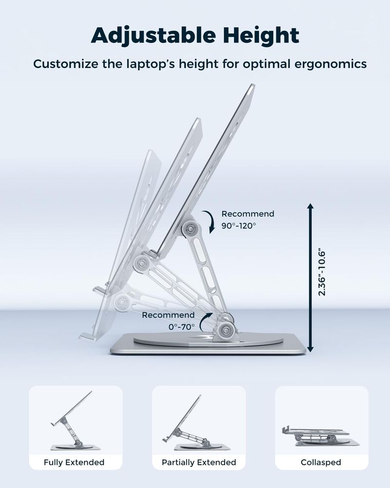 Soporte ajustable para computadora de escritorio - Elevador portátil para laptop con base giratoria,