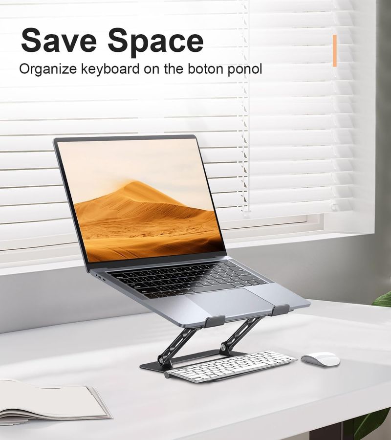 Soporte ajustable para laptop para escritorio, soporte portátil y elevador, soporte plegable de