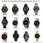 Compatible con cargadores de relojes de múltiples marcas, porque Michael Kors, Armani, Diesel, Fossil utilizan los cargadores de reloj de la MISMA Dimensión porque obtienen la solución de cargador de la misma empresa una empresa con sede en Santa Bárbara. Por lo tanto, nuestro soporte de reloj es capaz de sostener el cargador de reloj de varias marcas siempre y cuando el cargador de reloj sea el original el que viene con tu reloj inteligente