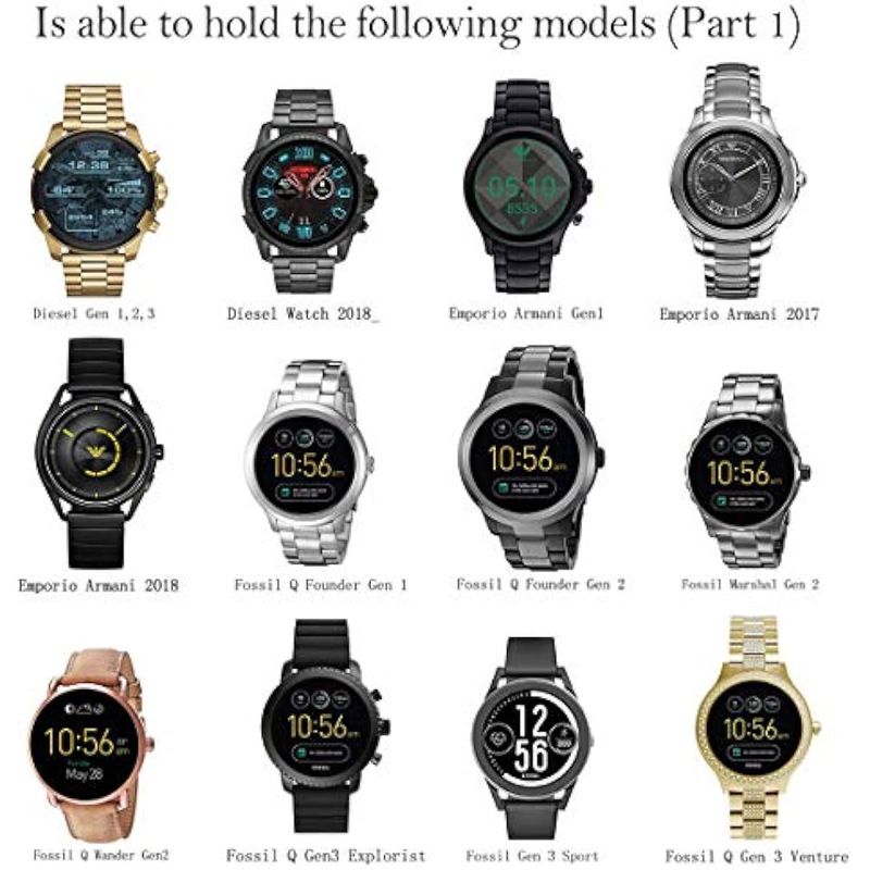Nota: los cargadores de reloj inteligente y reloj inteligente no están incluidos, este es solo un soporte universal para cargador de reloj inteligente para relojes inteligentes de múltiples marcas incluyendo relojes inteligentes de Michael Kors, Diesel, Fossil, Armani y más