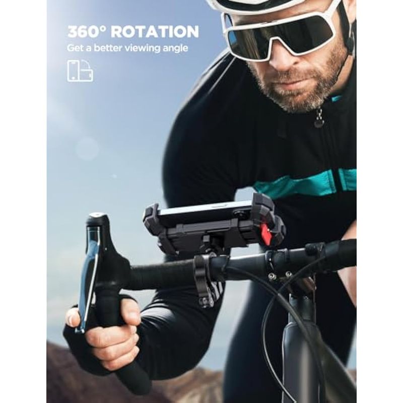 Rotación libre de 360°: nuestro soporte de teléfono para motocicleta con rotación de 360°, por lo que es fácil girar el teléfono sostenido horizontalmente, verticalmente o sentarse en cualquier posición. Es conveniente contestar el teléfono, reproducir música, posicionamiento GPS durante la conducción