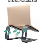 ??Resistente y protector? El soporte para computadora portátil está hecho de aleación de aluminio de alta densidad de 0.197 in que es bastante resistente y soporta hasta 26.5 lbs de peso en la parte superior con grandes almohadillas de goma en la superficie superior para mantener tu portátil estable en su lugar y proteger al máximo tu dispositivo de arañazos y deslizamientos. Ninguna parte de tu portátil toca la superficie de aluminio.