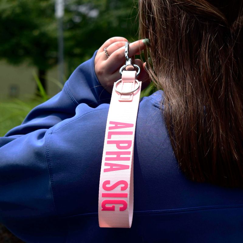 Sorority Shop Llavero Alpha Phi, llavero manos libres con nombre de hermandad, correa de poliéster
