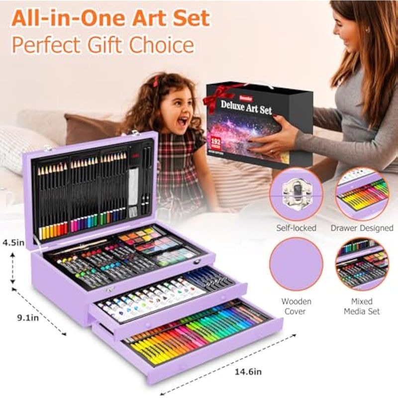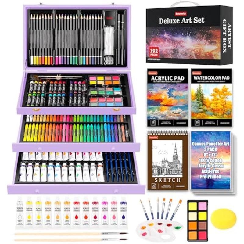 Soucolor Suministros de arte, paquete de 192 piezas de arte de lujo, suministros de pintura de