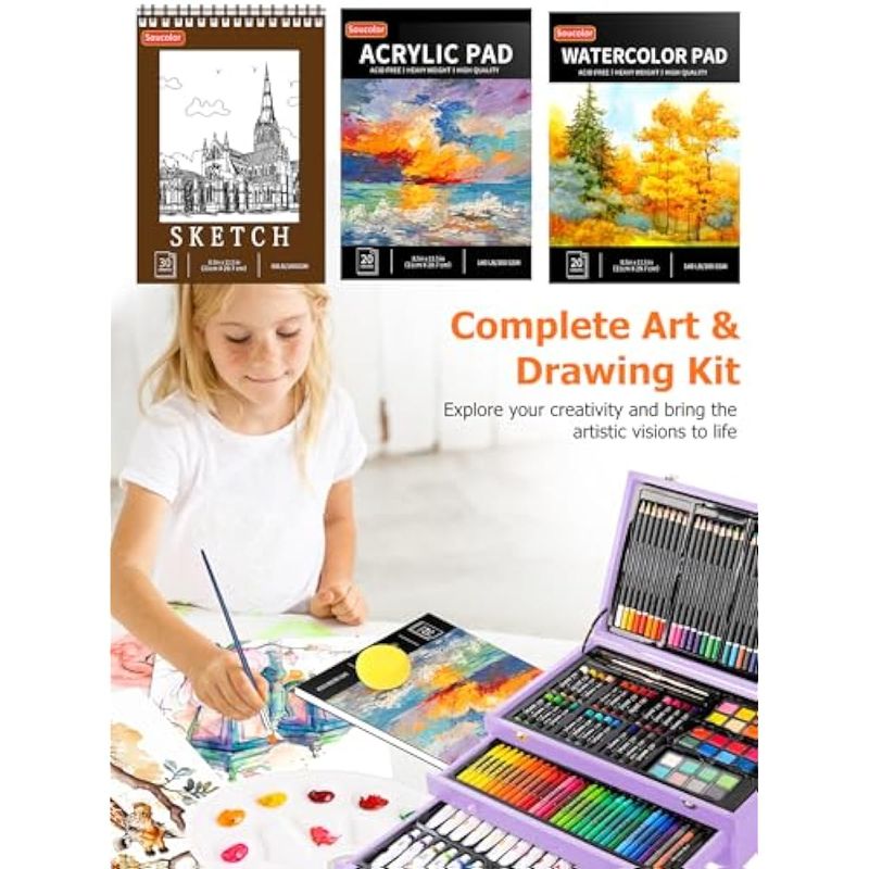 ARTE, LIBRERÍA Y OFICINAMATERIALES DE ARTESoucolor Suministros de arte, paquete de 192 piezas de arte de lujo, suministros de pintura de