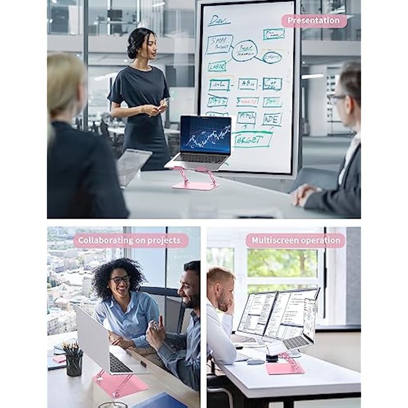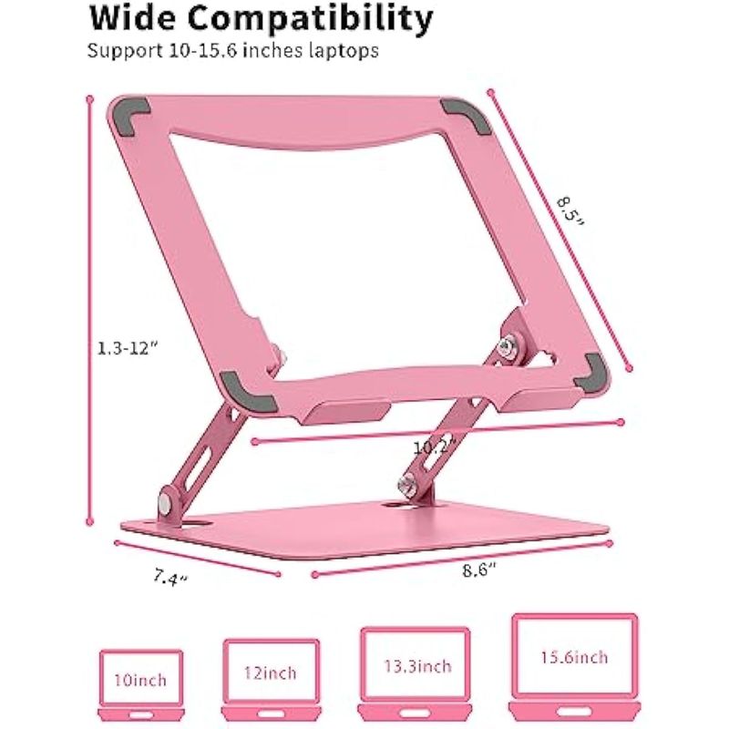 SOUNDANCE SOPORTE AJUSTABLE PARA LAPTOP, ELEVADOR PORTáTIL PARA COMPUTADORA DE ESCRITORIO, SOPORTE ERGONóMICO PARA COMPUTADORA, ELEVADOR DE METAL PARA LAPTOP, COMPATIBLE CON COMPUTADORA PC DE 10 A 15.6 PULGADAS, ROSA