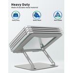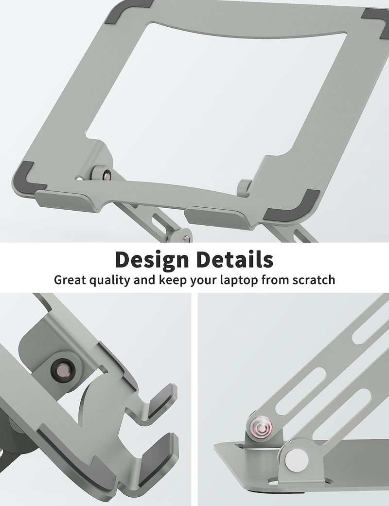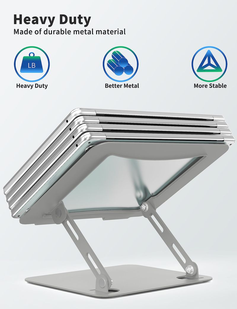 Más pesado y más estable: hecho de un material de metal de mayor calidad, la base del soporte para laptop es más pesada, soporte de doble varilla que garantiza la estabilidad y mantiene tu dispositivo firmemente en su lugar. Más fuerte y más estable que los soportes ligeros para portátiles hechos de aluminio.