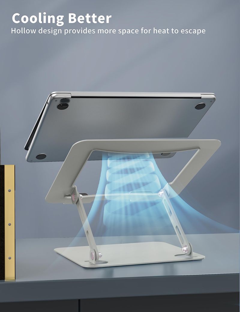 Más ventilación: el soporte ventilado para laptop tiene un diseño hueco que proporciona más espacio para que el calor escape, evitando que tu computadora portátil se sobrecaliente.