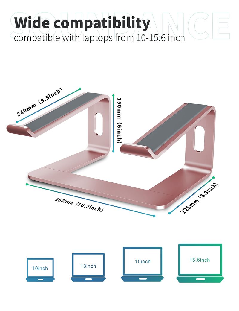 SOUNDANCE Soporte para laptop, elevador de computadora de aluminio, elevador ergonómico para