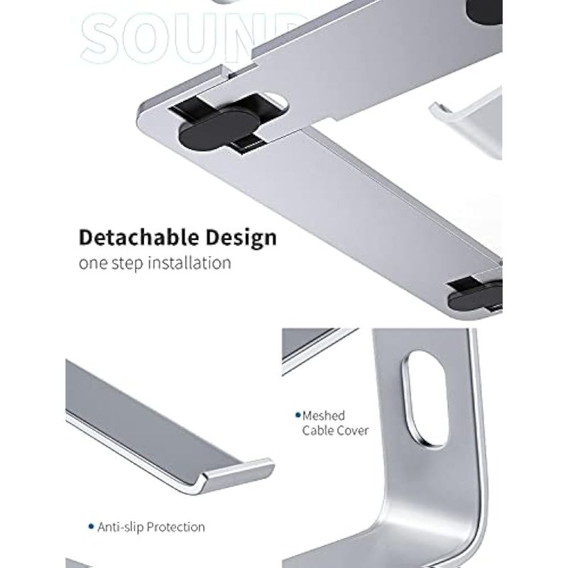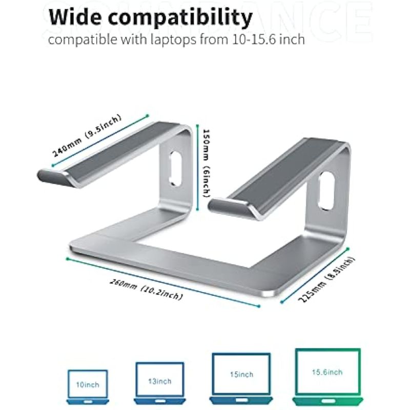 SOUNDANCE SOPORTE PARA LAPTOP, ELEVADOR DE COMPUTADORA DE ALUMINIO, ELEVADOR ERGONóMICO PARA COMPUTADORAS PORTáTILES, SOPORTE DE METAL COMPATIBLE CON COMPUTADORA PORTáTIL DE 10 A 15.6 PULGADAS, COLOR PLATEADO