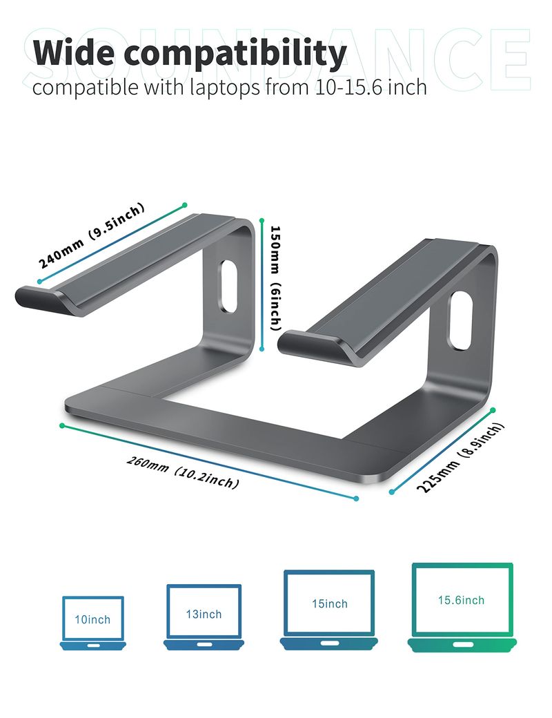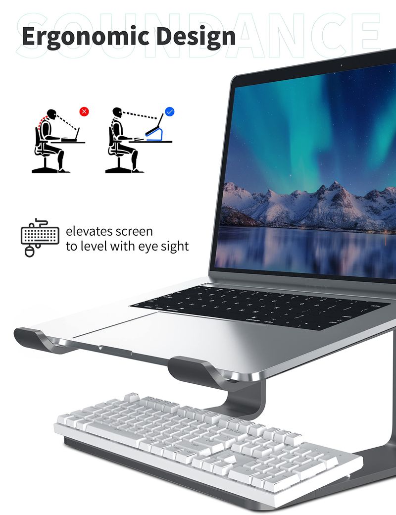 SOUNDANCE Soporte para laptop, elevador de computadora de aluminio, elevador ergonómico para