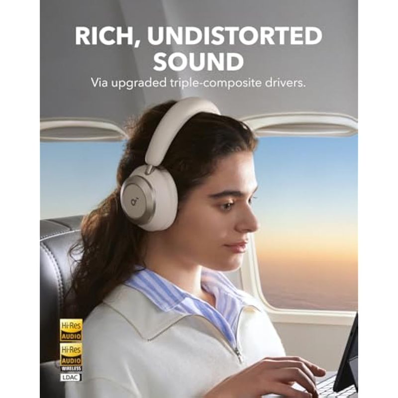Soundcore Space One Pro by Anker, Adaptive Active Noise Cancelling Headphones Driven by 6 Mics,