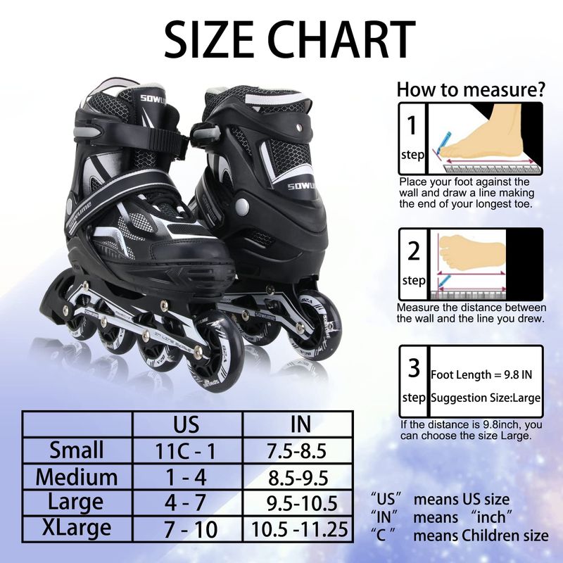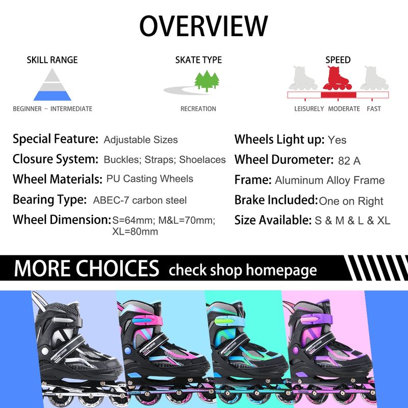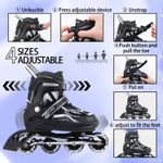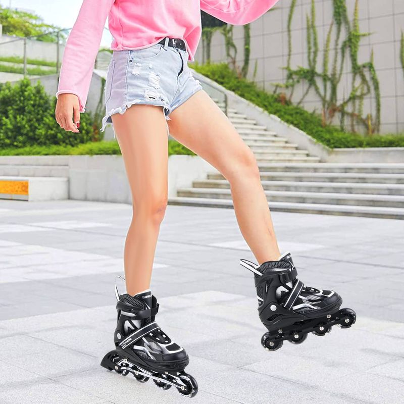 ? 4 tamaños ajustables: nuestros patines en línea tienen 4 tamaños diferentes, SMLXL, y cada tamaño es ajustable. El rodillo de cuchillas es fácil de ajustar y ajuste perfecto para niños en crecimiento.