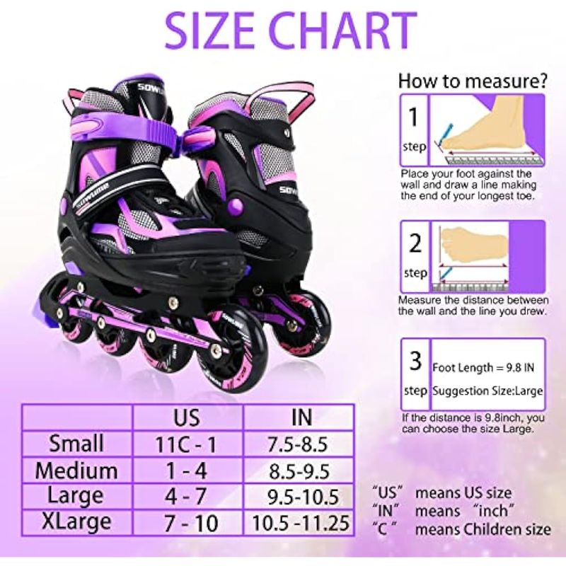 SOWUME ADJUSTABLE INLINE SKATES FOR GIRLS AND BOYS, ROLLER SKATES WITH ALL LIGHT UP WHEELS, PATINES PARA MUJER FOR KIDS AND ADULTS, MEN, WOMEN