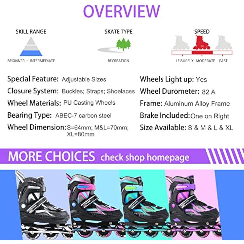 ? 4 tamaños ajustables: nuestros patines en línea tienen 4 tamaños diferentes, SMLXL, y cada tamaño es ajustable. El rodillo de cuchillas es fácil de ajustar y ajuste perfecto para niños en crecimiento.