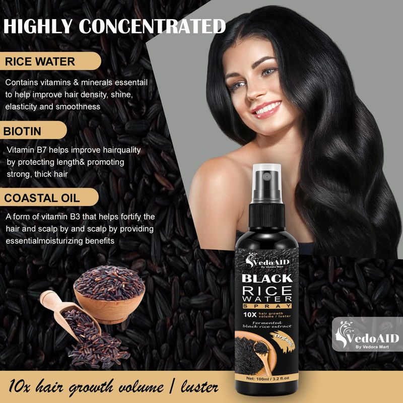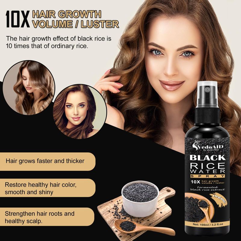 BELLEZA Y SALUDBELLEZA Y CUIDADO CORPORALCUIDADO CAPILARSpray de agua de arroz negro para el crecimiento del cabello, suero orgánico para el cabello con