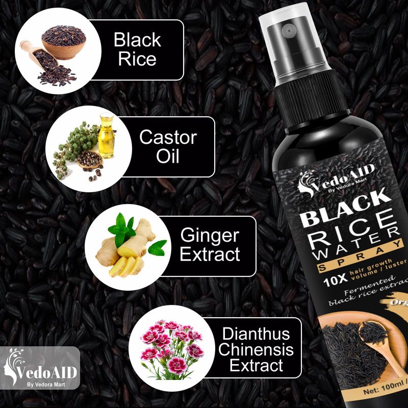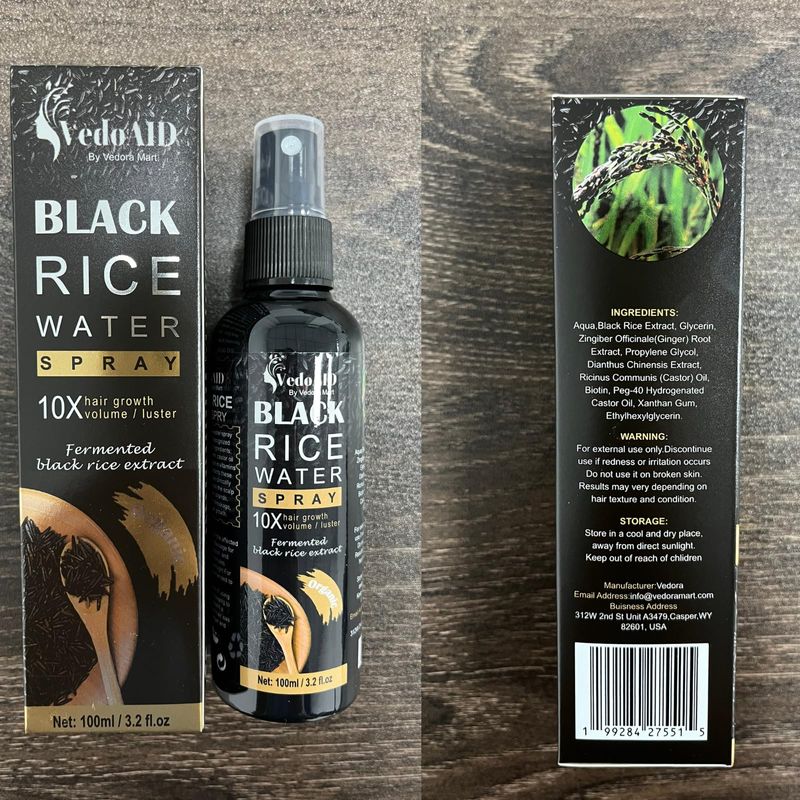 Spray de agua de arroz negro para el crecimiento del cabello, suero orgánico para el cabello con