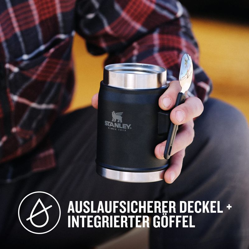 JARDÍNCAMPINGTERMOSStanley A prueba de fugas, apto para lavavajillas, acero inoxidable, negro mate, 0.4L