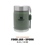 STANLEY CLASSIC LEGENDARY - TARRO DE COMIDA DE 0.4L COLOR VERDE MARTILLO CON TENEDOR, FRASCO DE SOPA DE ACERO INOXIDABLE SIN BPA, MANTIENE EL FRíO O EL CALOR DURANTE 7 HORAS, A PRUEBA DE FUGAS, APTO PARA LAVAVAJILLAS