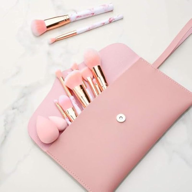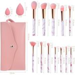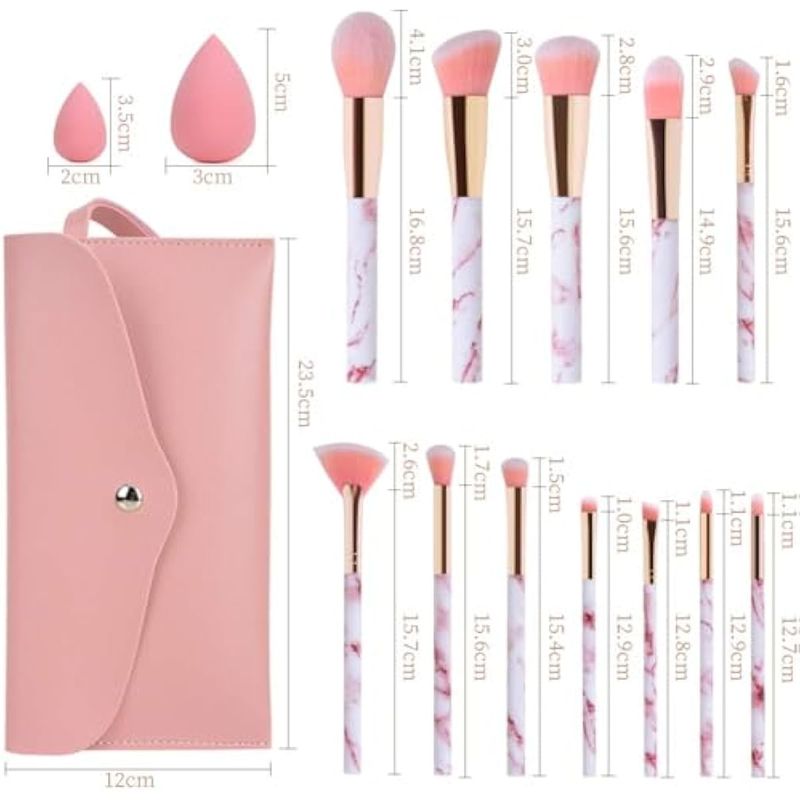 START MAKERS Juego de brochas de maquillaje, 12 brochas profesionales de mármol rosa con base,