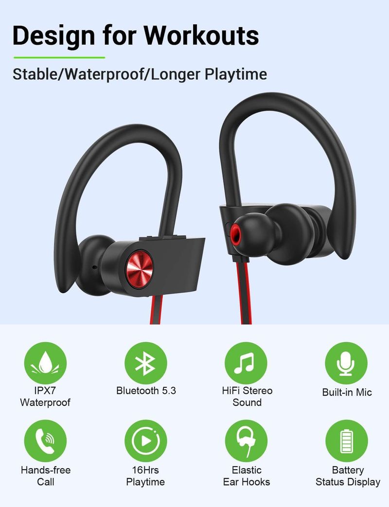 Stiive Auriculares Bluetooth, auriculares deportivos inalámbricos IPX7 impermeables con micrófono,