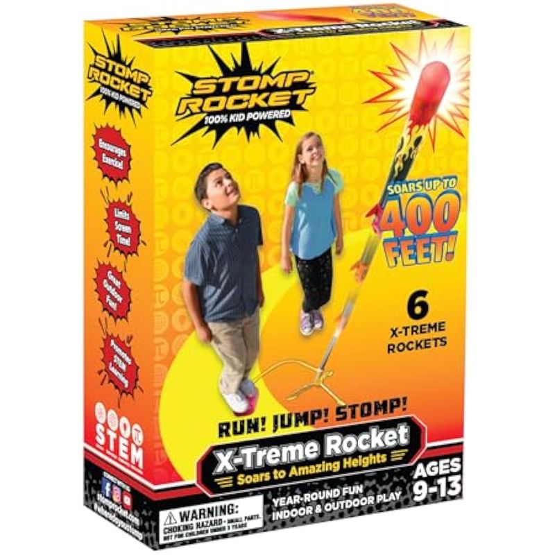 BEBES Y NIÑOSJUGUETESStomp Rocket Lanzador X-Treme de súper alto rendimiento, se eleva hasta 400 pies, 6 cohetes de