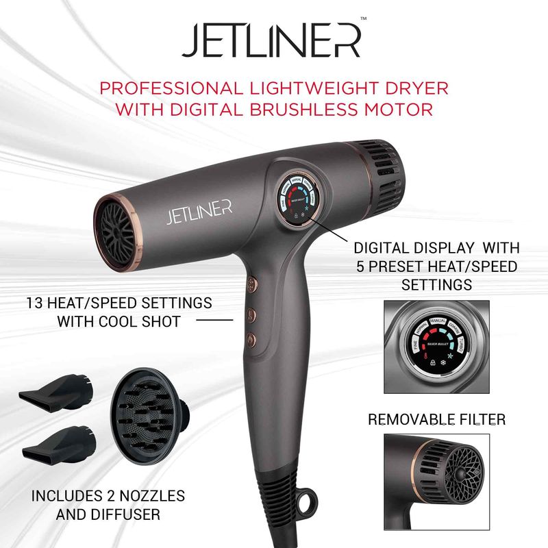 StyleCraft Secador de pelo profesional Instinct-X con motor sin escobillas y pantalla digital,