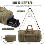 Bolsa de viaje y bolsa de aseo gratis: nuestra bolsa de lona grande está hecha de lona de algodón de alta densidad y herrajes clásicos, forro suave, cremalleras grandes y suaves. Las bolsas de lona también vienen con una bolsa de aseo de 15 USD que es conveniente para las personas que aman viajar. La bolsa de aseo puede mantener tus artículos esenciales de viaje organizados mientras viajas sin ensuciar tus cosas. La dimensión de la bolsa de aseo es de 9.1 in x 4.3 in x 5.9 in.
