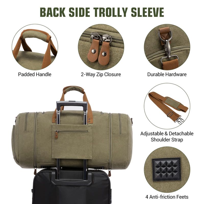 Funda para equipaje y compartimento para zapatos: la funda trasera te permite deslizarla sobre el asa de la maleta rodante, equipaje, bolsa con ruedas. Un compartimento para zapatos está diseñado en el lateral de la bolsa de lona para separar tus zapatos de otras cosas.