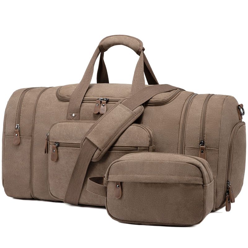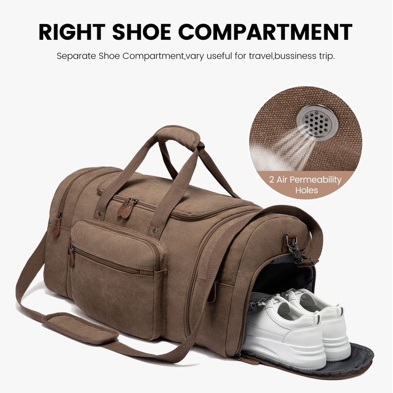 SUCIPI - BOLSA DE VIAJE DE LONA CON COMPARTIMENTO PARA ZAPATOS, BOLSA DE TRANSPORTE PARA AVIONES CON BOLSAS DE ASEO PARA HOMBRES, GRIS OSCURO, SIN RUEDA