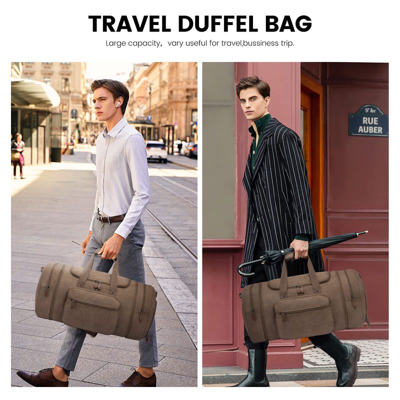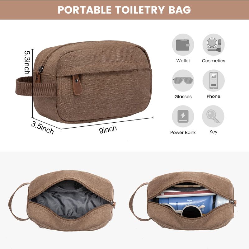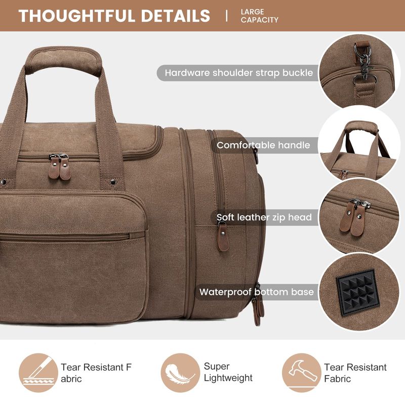 Bolsa de viaje y bolsa de aseo gratis: nuestra bolsa de lona grande está hecha de lona de algodón de alta densidad y herrajes clásicos, forro suave, cremalleras grandes y suaves. Las bolsas de lona también vienen con una bolsa de aseo de 15 USD que es conveniente para las personas que aman viajar. La bolsa de aseo puede mantener tus artículos esenciales de viaje organizados mientras viajas sin ensuciar tus cosas. La dimensión de la bolsa de aseo es de 9.1 in x 4.3 in x 5.9 in.
