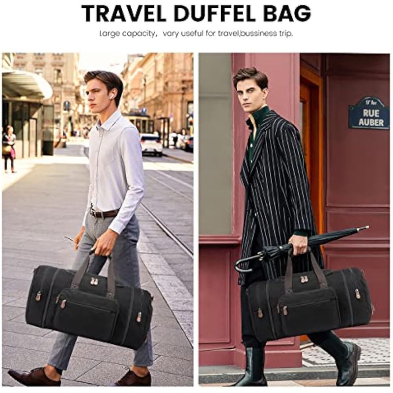 Bolsa de viaje y bolsa de aseo gratis: nuestra bolsa de lona grande está hecha de lona de algodón de alta densidad y herrajes clásicos, forro suave, cremalleras grandes y suaves. Las bolsas de lona también vienen con una bolsa de aseo de 15 USD que es conveniente para las personas que aman viajar. La bolsa de aseo puede mantener tus artículos esenciales de viaje organizados mientras viajas sin ensuciar tus cosas. La dimensión de la bolsa de aseo es de 9.1 in x 4.3 in x 5.9 in.